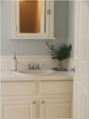 My sister gave me a pretty crystal bud vase which is now in my downstairs bathroom with a cutting of pine in it after doing this simple arrangement, I dug out one of my moms crystal pitchers (a small crystal creamer actually) to fill with some greens for the upstairs bathrooms.